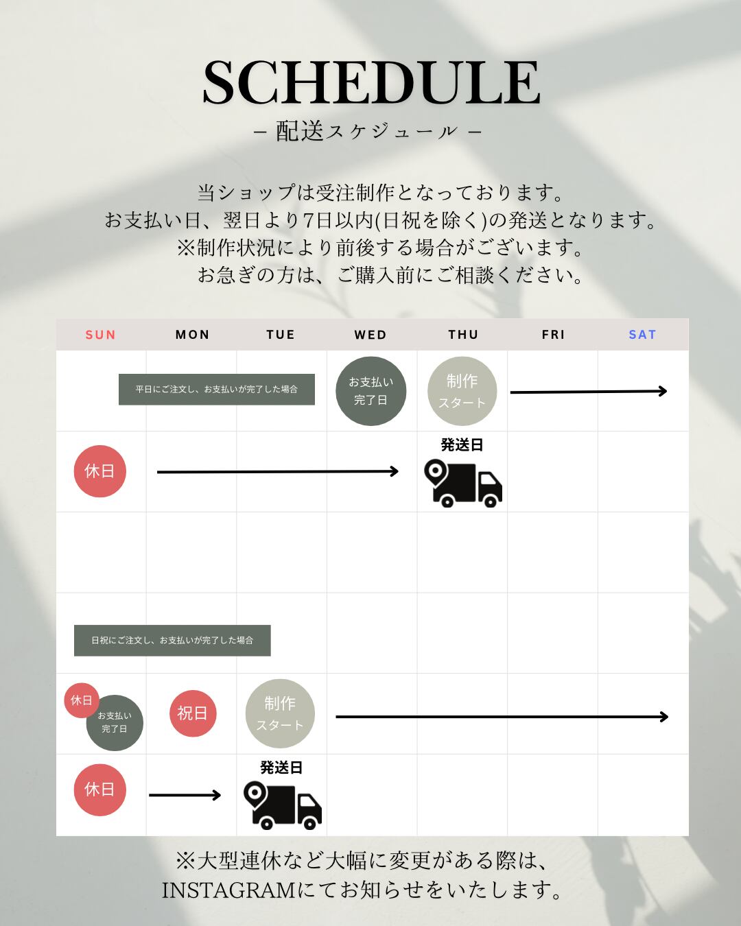 ご注文後に制作いたしますので、基本的に7日以内に発送予定です。お急ぎの方はご購入前にご相談ください。